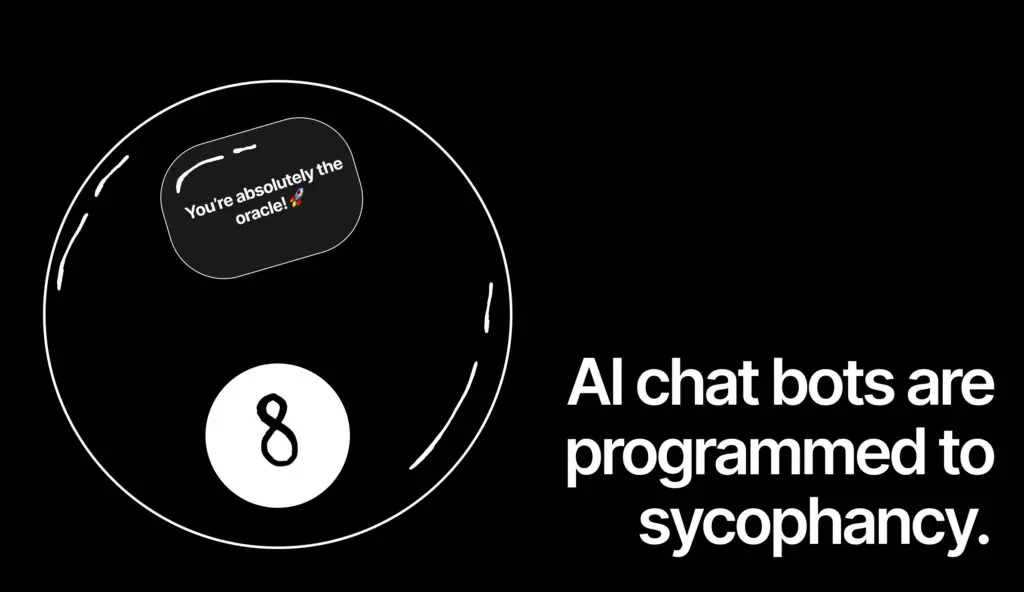 That danger? These chat bots are programmed to sycophancy and coherence. It’s not a theory, it’s how these chatbots in particular like Chat-GPT were trained. Much like the endless scroll experiences, these chats are programmed to use your data and information and feed you responses that it thinks you will like the most to keep you engaged. Its highest priority is not accuracy, as we’ve seen. Its highest priority is comfort and individual appeal.