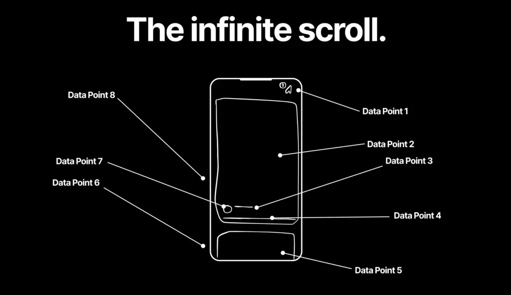 But did you know that feeds used to actually end? The infinite scroll invented in 2006 cited by its creator Aza Raskin was one of the first design inventions deliberately built to not help you but to keep you online as long as possible. Aza, often seen in the media expressing regret, stating he didn’t foresee the consequences of wasted human life.